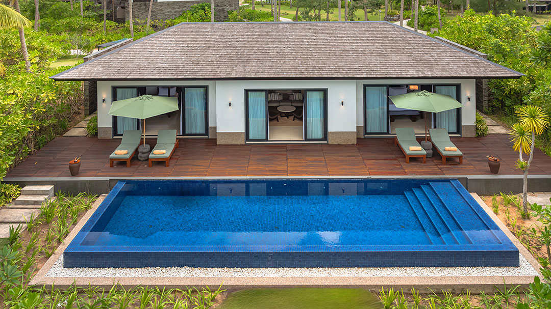 Accommodation is divided into several prestigious categories: Beachfront Villas, located just steps from the shore with private pools and direct access to white sand; Garden Terraces, nestled in tropical gardens for absolute privacy; and The Estate, spectacular residences perched on the hillside offering panoramic views of the South China Sea. Each retreat features expansive living spaces, furnished terraces, and attentive service, guaranteeing a "barefoot luxury" experience perfectly integrated into the island's pristine environment.